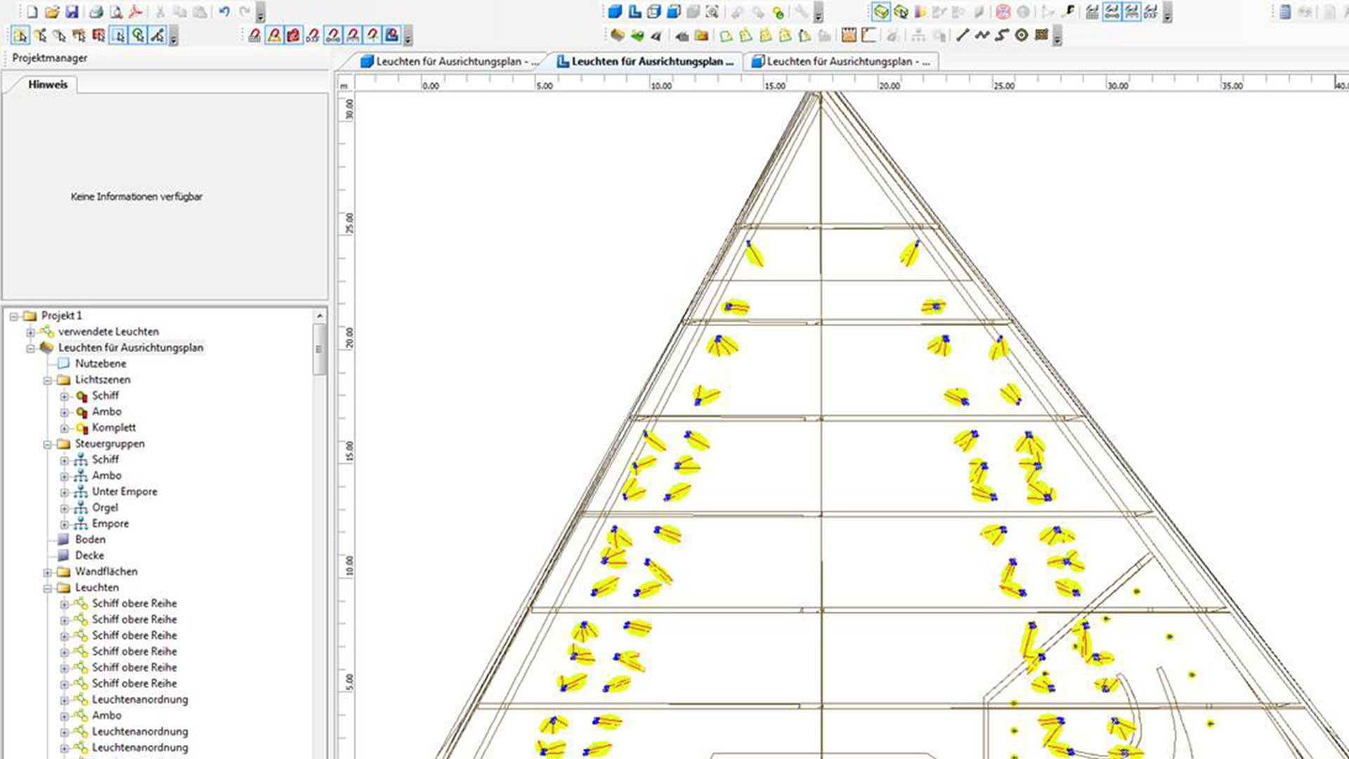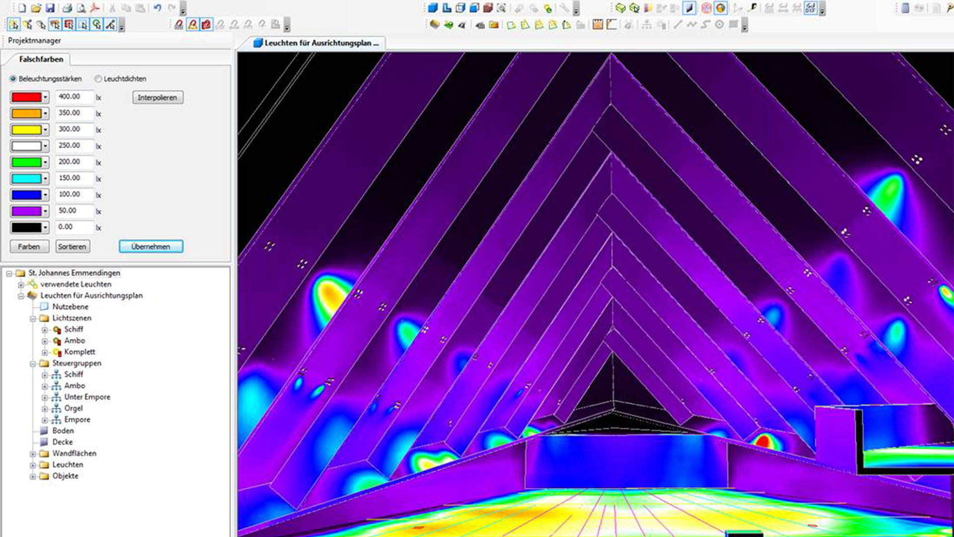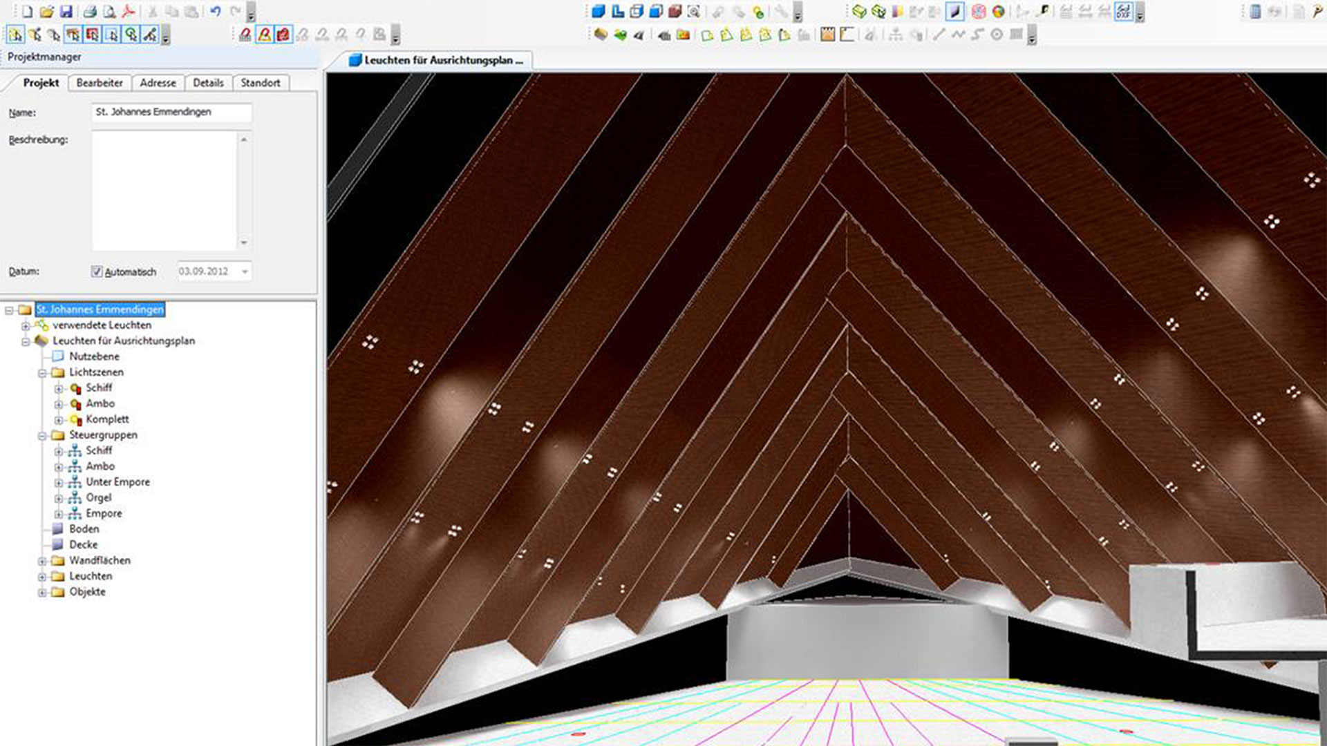 Facettenreiche Ausleuchtung im Kirchenschiff