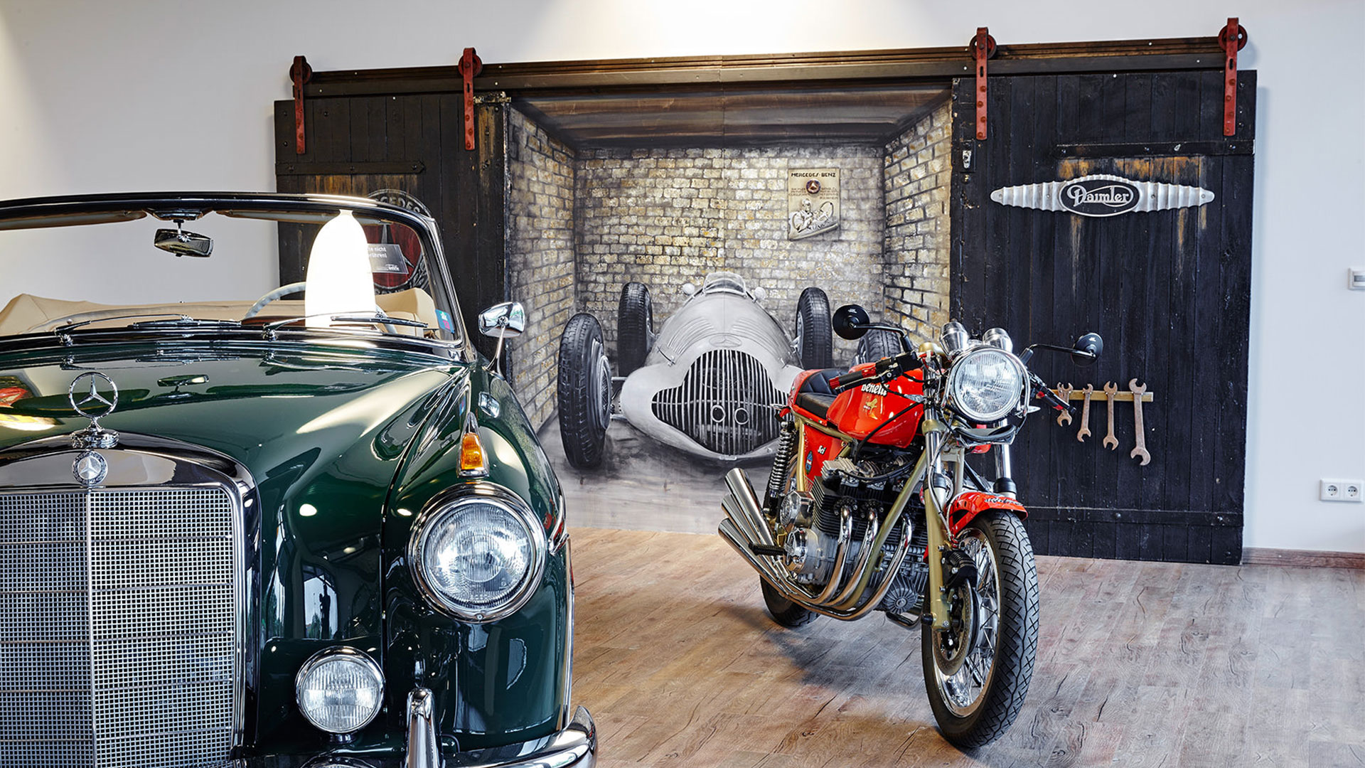 Für die neue Ausstellungsfläche wünschte sich die Oldtimer-Galerie eine anspruchsvolle Grundbeleuchtung, ein Flächenlicht. Eine besondere Akzentuierung sollte dabei auf den Oldtimern in der Galerie und den Wandbildern liegen. Das Lichtkonzept sollte langlebig, energieeffizient und für verschiedene Lichtstimmungen steuerbar sein.