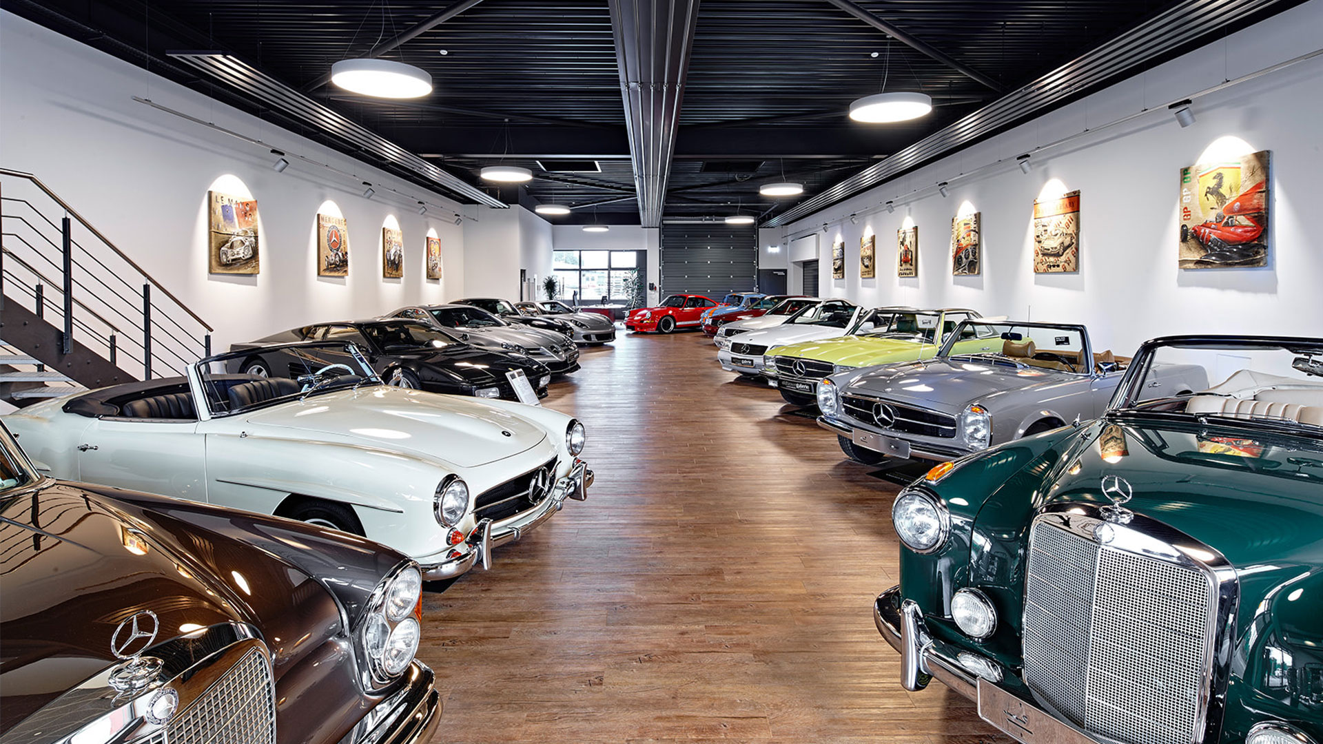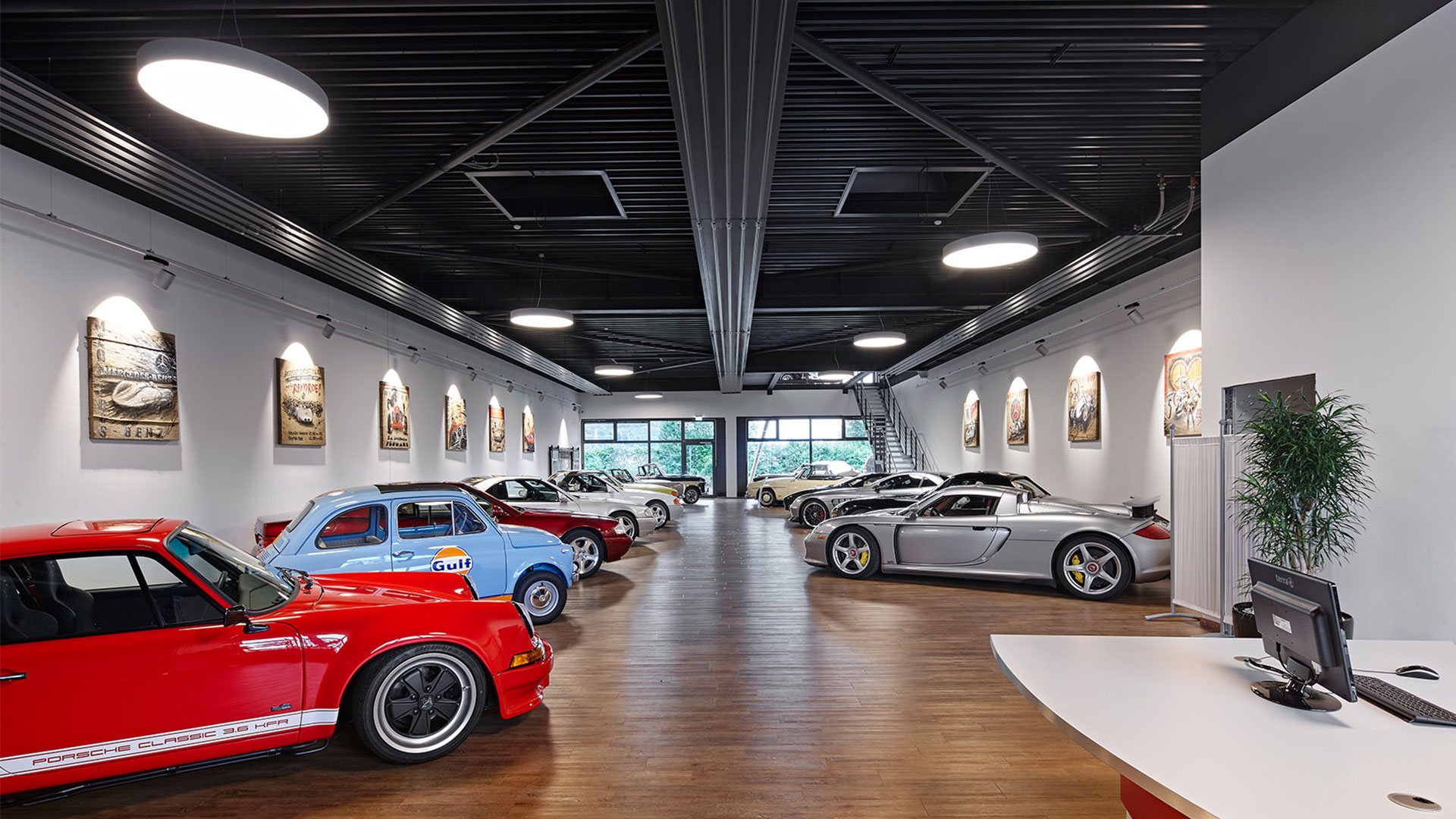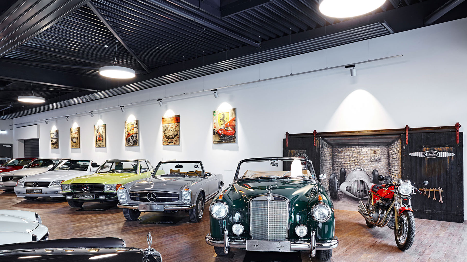 Nicht einfach nur nebeneinander geparkt: Mit der innovativen LED-Beleuchtung in den neuen Räumlichkeiten macht das Betrachten der hochwertigen Fahrzeuge besonders Spaß.