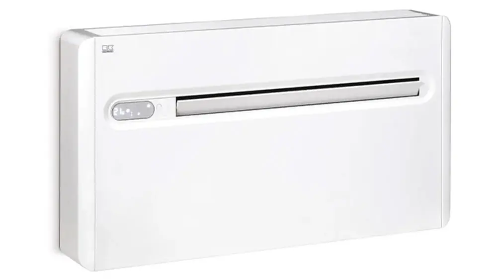 Das kompakte Raumklimagerät der KWT-Serie besticht durch modernste Inverter-Technologie in einem platzsparenden Design und erfordert kein Außenteil. Es sind nur zwei Wandlöcher für die Installation erforderlich. Dank der eingebauten Wärmepumpenfunktion arbeitet das Gerät zuverlässig sowohl im Kühl- als auch im Heizbetrieb bei Außentemperaturen von bis zu -10 °C. Das Gerät wird komplett mit Montagematerial geliefert und ist steckerfertig, wodurch die Installation besonders einfach und flexibel ist.