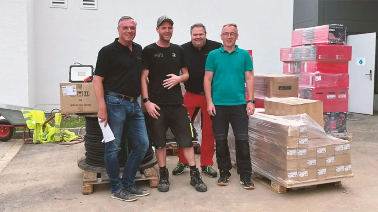 "Die Anfrage dazu kam gleich von mehreren Seiten“, berichtet Vertriebsleiter Harald Saulewicz, der die Aktion ins Rollen gebracht hat. Sowohl Kunden als auch Außendienstler von Alexander Bürkle hätten nachgefragt, ob sich das Unternehmen engagieren werde. Den Ausschlag gab schließlich ein besonders engagierter Kunde: die Elektro Althaus GmbH, deren Inhaber Matthias Rossel sich mit seinen Mitarbeitern an den Wochenenden freiwillig engagiert, um für die vom Hochwasser betroffenen Menschen im Landkreis Ahrweiler wieder eine Elektro-Infrastruktur aufzubauen.