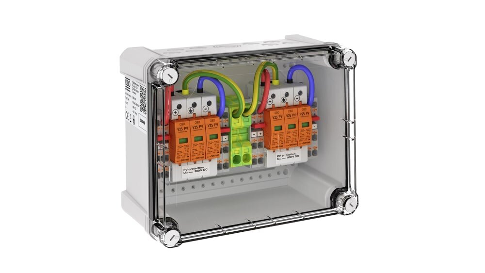 Überspannungsschutz für PV-Anlagen hat immer zwei Seiten: Sowohl auf der Gleichspannungs- als auch auf der Wechselspannungsseite können aus verschiedensten Gründen Überspannungen ins System eingekoppelt werden und so beispielsweise den Wechselrichter beschädigen. Doch auch hier gehen Anwender mit OBO auf Nummer sicher: Denn der OBO Überspannungsschutz sichert alle Seiten zuverlässig ab. Zum Schutz des DC-seitigen Eingangs des Wechselrichters bietet OBO die mit Blitz- und Überspannungsschutz vorkonfektionierten Generatoranschlusskästen an. Die UV-beständigen Kästen überzeugen mit einer hohen Schutzklasse von IP66 und einer Stofffestigkeit von IK07. Besonders praktisch: Der Anschluss der Leitungen erfolgt schnell und sicher über Klemmen mit Push-In Technologie. Für den geprüften Überspannungsschutz besteht eine Gewährleistung von 5 Jahren.