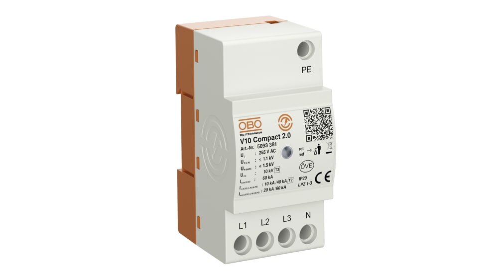 OBO hat verschiedene Überspannungsableiter entwickelt, mit denen Gebäude und Anlagen mit unterschiedlichsten Anforderungen geschützt werden können. Dazu zählen der V50 Kombiableiter vom Typ 1+2, der Überspannungsableiter V20 vom Typ 2 und der V10 Compact 2.0. Sie verhindern zuverlässig Überspannungen durch Blitzereignisse und Schalthandlungen, durch die elektronische Geräte oder Datenleitungen geschädigt werden könnten. Der Kombiableiter MCF-NAR schützt vor Blitz- und Überspannungsschäden im netzseitigen Anschlussraum. Allen OBO Überspannungsschutzgeräten gemeinsam ist die unkomplizierte Montage.